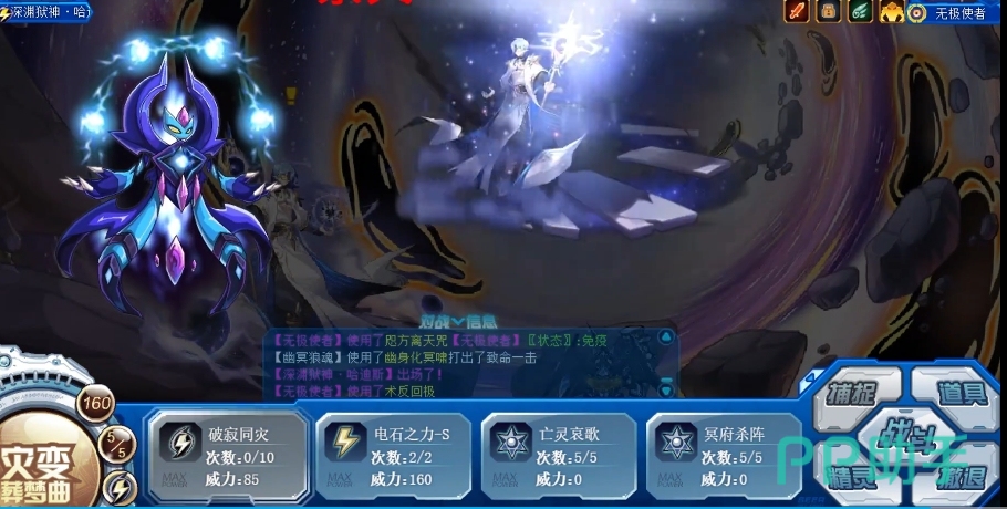 无极使者在回合开始时,会根据自身的体力状况获得不同的增益效果,若自身为满体力,当回合自身所有技能先制+1,这能让它在出手顺序上优先于对手,提前发动攻击或技能,若自身不为满体力,当回合受到的攻击伤害额外减少50%,每减少1点攻击伤害,自身下次攻击附加1点固定伤害,而在配招方面,有多个技能可供玩家选择搭配。