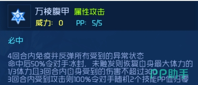 130技能玄影兵盾相较于先3技能,在实际战斗中的必要性便大打折扣,核心技能万棱腹甲则具备4回合的弹控效果,并且必定命中,同时还能锁定一定的伤害数值,在控制对手的同时给予其稳定的伤害输出,此外该技能还附带概率冰封控制效果,而在成功触发控制效果后,还会进行补偿回血续航,然而缺点在于控制概率相对较低,且锁伤数值未能达到最低的200点,在一定程度上影响了其整体的实用性,不过在残血关键时刻万棱腹甲技能能够与魂印效果形成紧密联动。