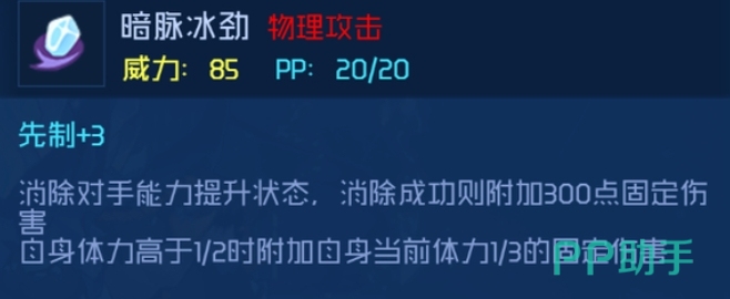 其中体力种族值以及体力数值较高的刻印更是关键所在,先3技能作为粉伤输出的重要组成部分,其伤害处于中游水平,该技能的独特机制在于,即使受到对手的抗性减免影响,或者触发了其他相关效果,只要两者其一发挥作用,便能稳定地获得至少300点粉伤收益,而且在实战中,这些触发条件相对容易达成,弱化技能震地雪覆所附带的三个属性弱化效果均能达到-2的程度,尤其是命中属性的弱化效果格外突出。