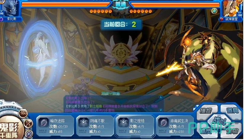 鬼影千重阵是索比斯的第五技能也是必中的,能够消除对手回合类效果,若消除成功则对手2回合内攻击MISS,并且造成伤害的50%会恢复自身体力,它继承了索比拉特减命中高闪避的特点,避免了在对方免弱情况下无法弱化带来的局面,在如今大部分技能都是回合效果的环境下,这里的断回合效果使得对方两回合MISS的触发概率相当高,而造成伤害一半恢复体力这一效果,一方面提升了索比斯的生存能力,另一方面也为将来可能挑战PVE小BOSS等情况提供了一定的回血能力。
