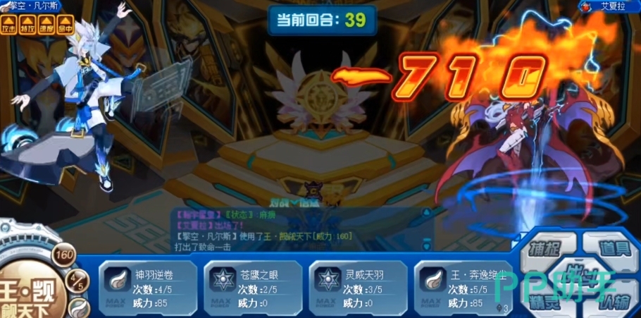 灵威天羽也是一项强力技能,它同样具备必中的特点,释放后可使自身全属性+1,在2回合内每回合攻击和速度都能得到进一步提升,在4回合内,每回合都能恢复自身最大体力的1/3,并造成等量的固定伤害,使用后的下2回合,对手受到的伤害会提高100%,同时自身所有技能先制+2,王·奔逸绝尘作为先制+3的技能,具有强大的控场与回复能力。
