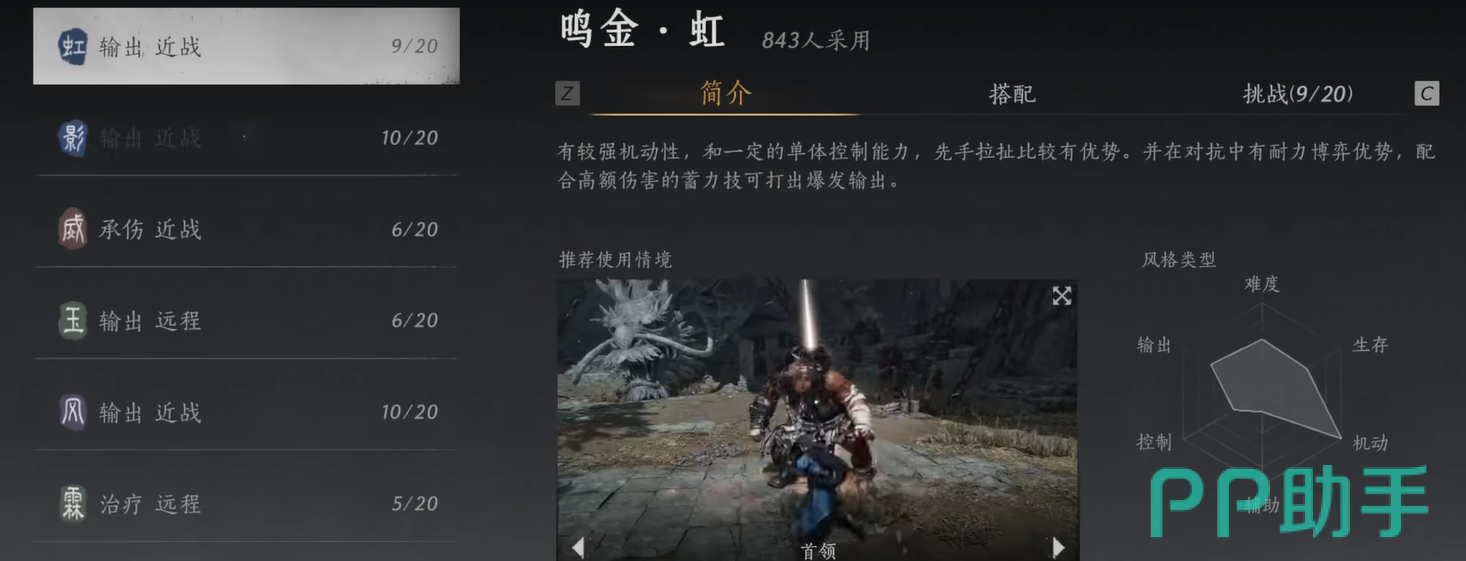 紧接着是鸣金影,流派由“积聚九剑”和“九曲惊神枪”组成,虽然两者的配合并不强,但它们的组合在灵活性上有着独特的优势。积聚九剑是一种耐力消耗巨大的武学,需要玩家精确计算战斗节奏。而九曲惊神枪则没有任何耐力消耗,输出稳定,可以独立使用。鸣金影适合那些喜欢灵活应变、善于根据战况调整打法的玩家。由于它的耐力消耗和武器搭配比较自由,玩家可以根据战斗需求灵活选择副武器,玩得非常舒适。