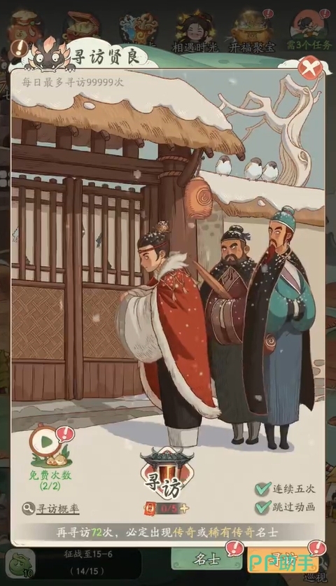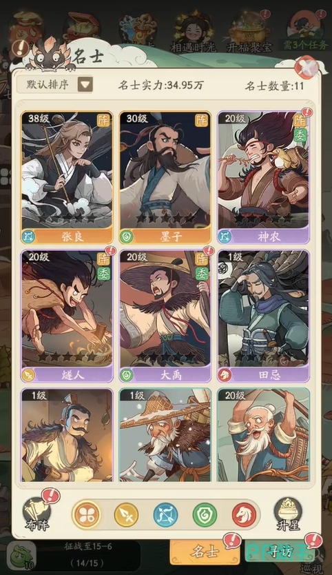 做好名士养成规划也是零氪玩家最需要注意的事情之一,毕竟在资源很有限的情况下,玩家门能难将所有的名士都培养起来,因而前期最好将资源放在金色品级的名士,或是能为全队提供增益、治疗的名士上,让他们能为队伍带来更大的帮助,间接地增强玩队伍的整体战力。