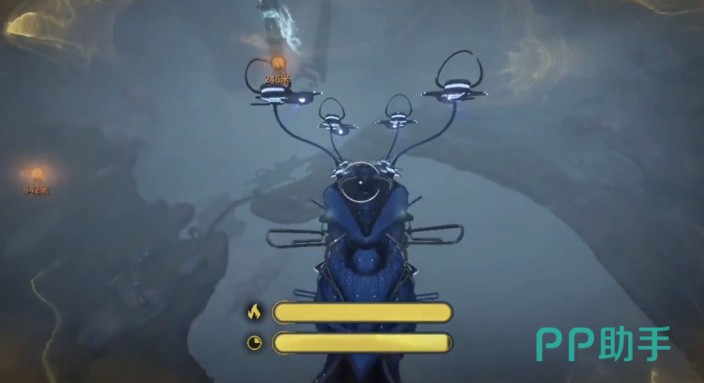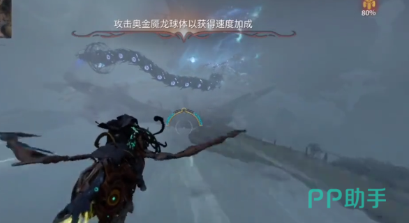 此时玩家就可以点击圆点勾住飞龙的身体,一旦在成功勾住之后就可以对准圆点去攻击。按照这一个方法选择持续前进,慢慢的靠近飞龙头部的位置。但需要注意,此时不要攻击,一旦攻击只会影响到成功几率,容易打草惊蛇。