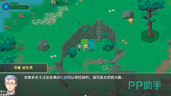 第一部分任务内容是希尔瓦往事,其实要想激活这部分任务非常简单,玩家可以前往图中的深坑处,坐标为(15,17),在看完学者的故事后,与旁边草地里的塔洛之墓进行互动就可以触发隐藏任务席尔瓦往事,之后学者会二次和玩家们交谈,在交谈完成后就可以获得奖励。学者笔记一个粉红色的副手书籍。