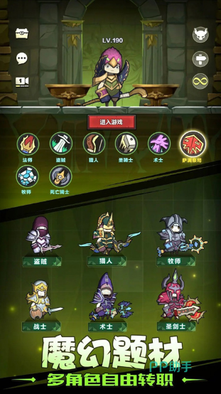 游戏里面有多种职业角色供大家选择,他们不仅外貌和性格各异,还各自拥有特别的武器装备和招式技能。我们可以按照我们自己喜欢的风格,自由选择喜欢的角色,开始我们的冒险之旅。而且他采用放置挂机玩法,让大家在忙碌时也能享受游戏的乐趣。还可以通过升级和强化,提升英雄实力,帮助大家轻松闯过难关。