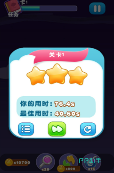 这款游戏特别准备了排位赛,很好的促进了玩家与玩家之间的互动性,你可以与不同玩家进行消消比拼,看谁的眼力、反应力更胜一筹,荣登排行榜,你可以直观了解自己的消消实力。游戏只要两分钟就可以体验一局消消乐趣,就算你忙碌于学业工作,都能轻松挤出缝隙时间来玩,十分的解压,让你工作学习更有效率。