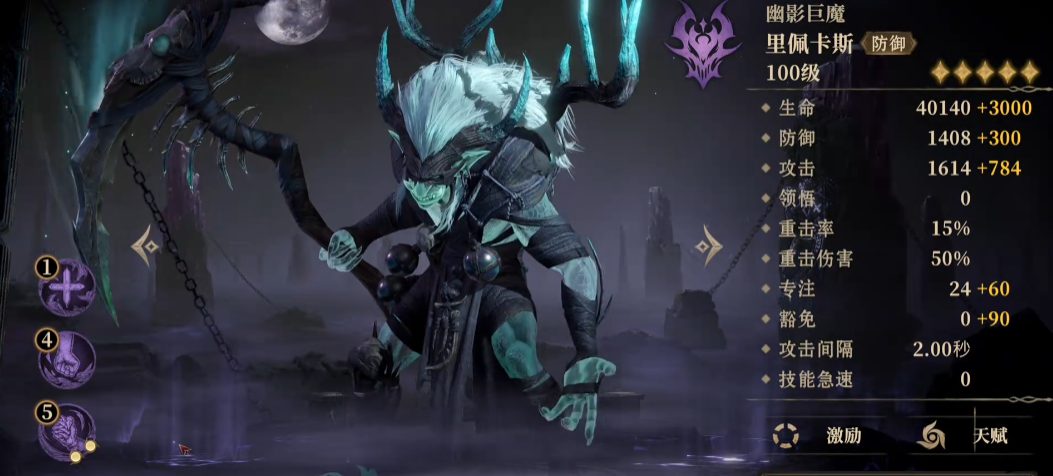 首先看下他的部分属性数值,血量达到了40140,生存能力非常的强悍,防御也达到了1408,作为防御角色,他的攻击力也有1614,丝毫不逊色。”顺手牵羊”是他的被动技,在敌方目标受到治疗时,自己也会受到相当于敌人治疗量50%的治疗效果,每1秒内能生效1次,进一步增强他的存活能力。