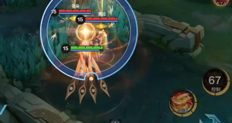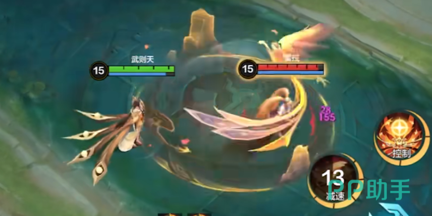 在指定位置召唤凤灵,立即对范围内敌人造成魔法伤害,并附带短暂减速效果。凤灵会在该位置盘旋3秒,每0.5秒对敌人造成魔法伤害,同时减少其10%魔法防御。技能效果持续期间,武则天可再次施放该技能,并指挥凤灵冲向新的指定位置,到达后再造成一定的魔法伤害和50%的短暂减速效果。