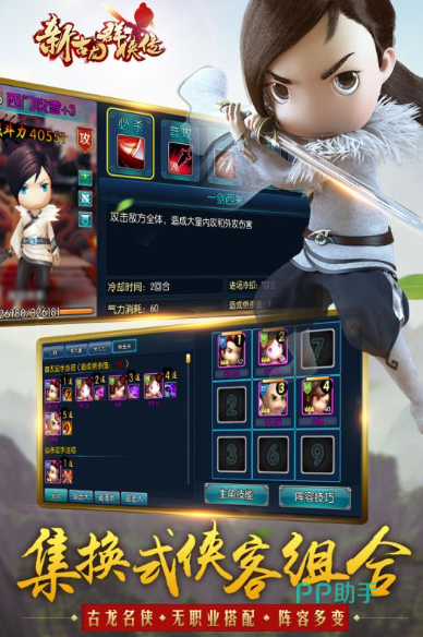 游戏里的场景图像、角色造型无不以Q萌画风来描摹,让你看到一个全新的世界,治愈着你的心灵。游戏中会出现古龙笔下的人气角色,且他们都能为你所用,为你披荆斩棘,奋不顾身。游戏拥有实时PK玩法,只要你开启,游戏会智能匹配与你战力旗鼓相当的对手,你们可以来一场精彩的公平竞技。