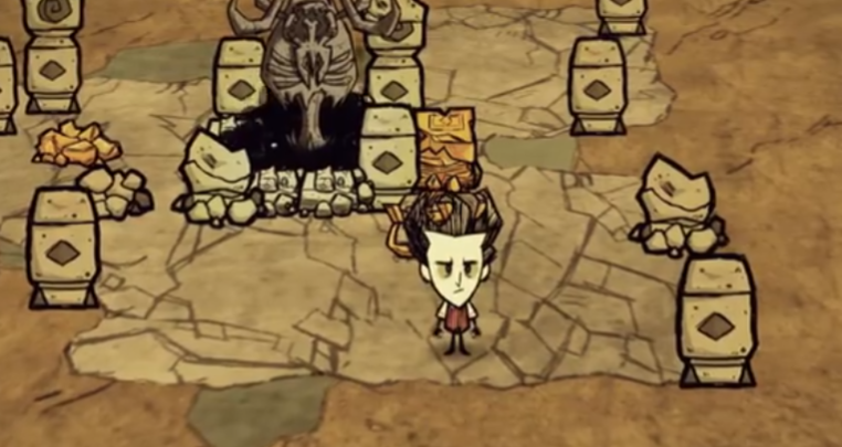 首先大家在探索地图的时候能找到一个如下图所示的远古遗迹,当我们靠近它的时候,会发现建造栏中多出一个“远古”的图标,我们点击这个图标,就可以在建造栏中找到唤星法杖的选项。