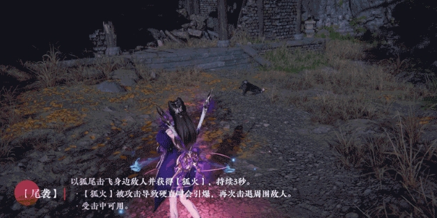 如果有敌人靠近,小伙伴们就可以使用尾袭,能够击飞自己周围的敌人,并且获得狐火,狐火被攻击之后会爆炸,能够再次击退自己周围的敌人。