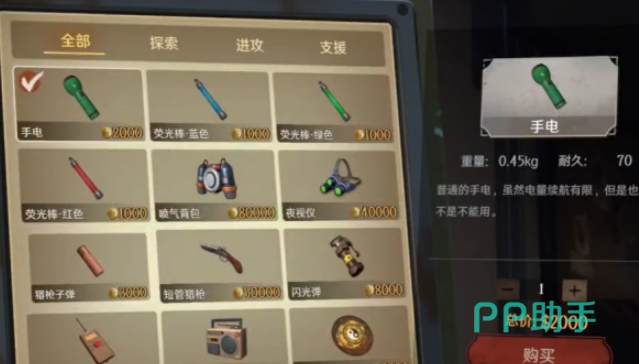 手电筒是一种可以在商店购买得到,也可以在地图中探索获得的道具,它在照明中突然不亮,其实是因为耐久度的原因,而这个耐久度会有便宜的和贵的区分,商店中大家能看到夜视仪、荧光棒、手电筒和专业手电筒等等照明用具。