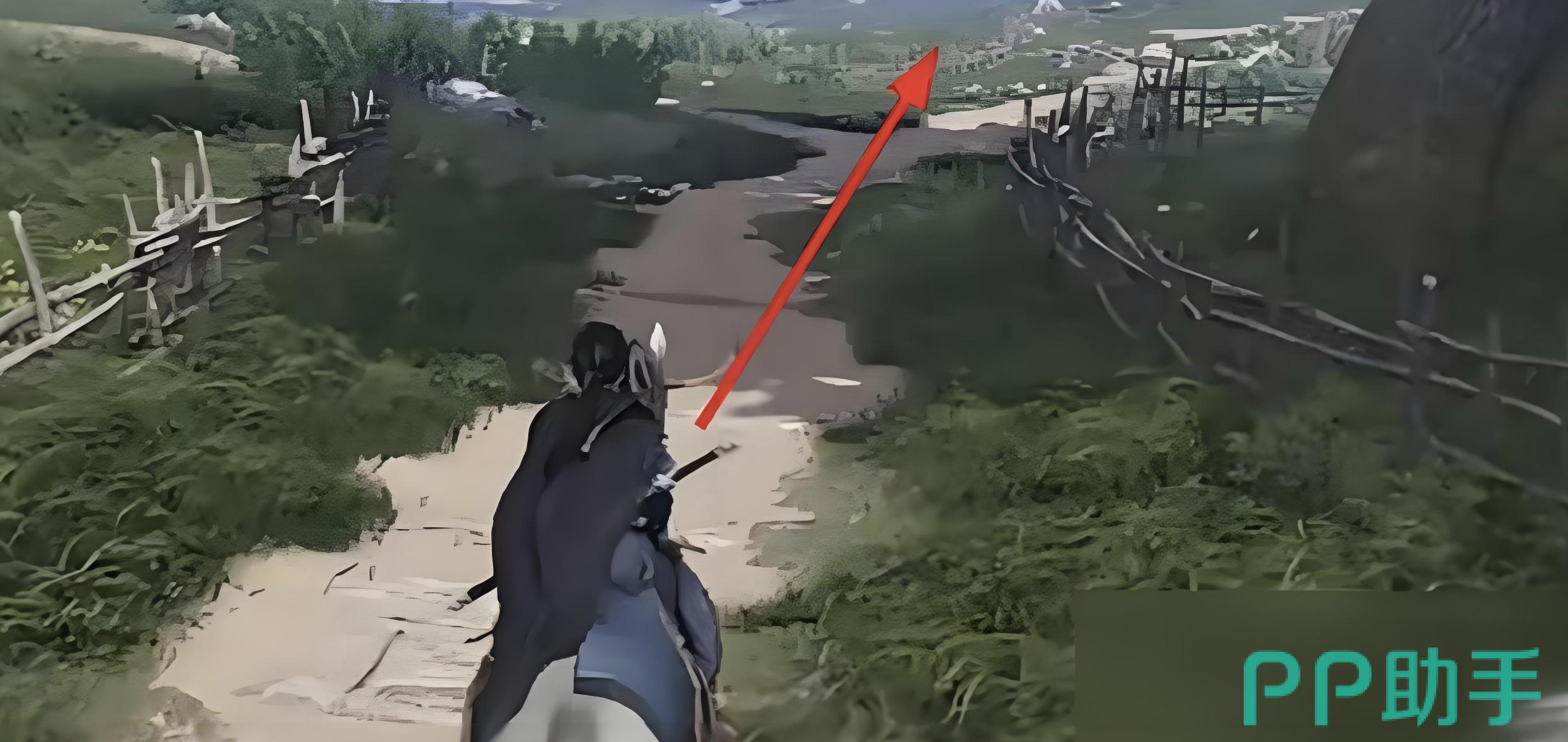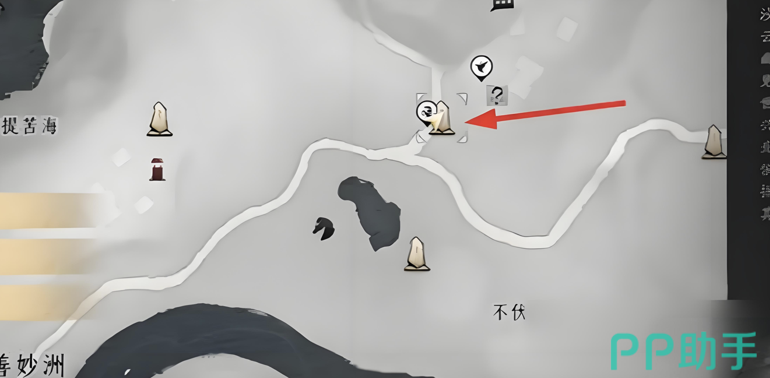 首先,得先传送到善妙洲的伏马庄传送点,具体位置大伙可以看游戏里的地图,如果还找不到,就多留意下周围标志性的建筑啥的。到了传送点后,就朝着箭头所指的方向走。这里要注意,这个任务必须得在白天做,晚上去的话可触发不了,白跑一趟就亏大了。
