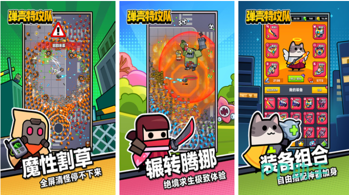 弹壳特攻队是近些年备受好评的一个肉鸽闯关类竖屏手游,不仅加入了双人合作的玩法还有许多装备进行组合,玩家也只需划屏控制角色辗转腾挪躲避各种伤害即可,魔性十足的割草过程更带来了无与伦比的刺激感,多样化的宠物、装备结合会触发更多的战斗方式,如果你是割草类游戏粉丝就可以玩一下弹壳特攻队!