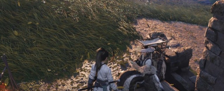 然后沿着小路往前走,可以利用跳跃以及冲刺,还有下坠的方式来进行操作,必须要冲到很高的房子上面,来连续的跳跃三次即可,上前继续走,会发现毒蝶,必须要消灭他们,然后来破除周围的毒瘴,把焕歌白目莲这个道具拿到,然后就会看到一个人在这里射鸟,可以学习到停渊止水这个奇术,后续可以在拉弓的时候来使用,玩家们需要和他们来比赛,射鸟。