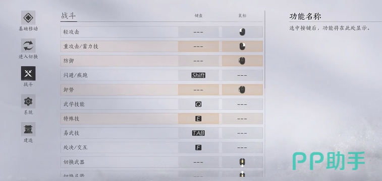 鼠标左键是普通攻击,这是战斗中最常用的技能之一,鼠标右键推荐设置为卸势操作,能在战斗中可以打断敌人的连贯攻击,为自己赢得宝贵的反击机会。