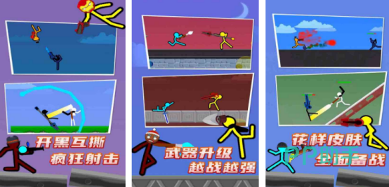 简约的画面以及流畅的操作方式,在这里玩家可以操控自己喜欢的火柴人,并参与到自己的战斗闯关模式当中,火柴人都具有着比较好的投射能力,而且在面对更多敌人的时候,可以将各种物品当做武器顺利完成消灭。其中的敌人类型有很多,玩家可以和自己的好友相互携手,共同消灭敌人。