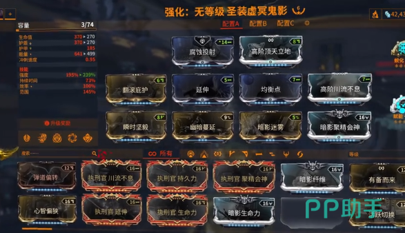 玩家还可以选择使用钢铁充能,可以在战甲以及幽影之间反复的切换,还能刷出一些满能量的效果,而其余的这些配卡可以根据个人的习惯去搭配。