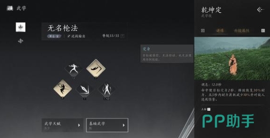 乾坤定是一种控制技能,能够使目标定身2秒,并且恢复自身耐力,在对抗单一强力敌人时尤其有用,可以有效打断对方的攻击节奏,同时给自己争取更多的反击机会。