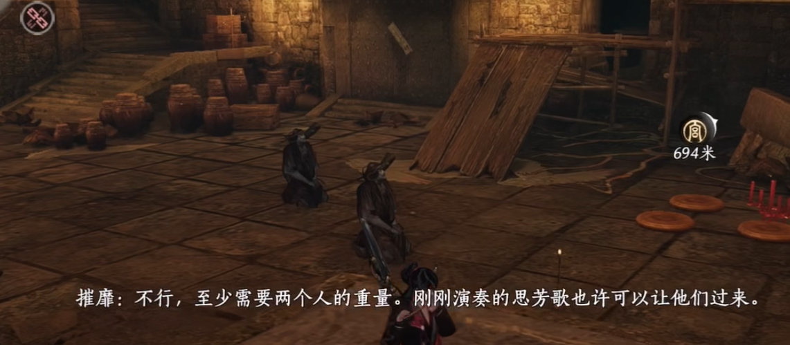 接下来,你需要站在门前的机关上,按下P键使用姿态动作【思芳歌】,成功吸引无面人进入这个区域。当无面人踩上石板时,门就会打开,顺利进入密室后,别忘了激活新的界碑,继续前进。