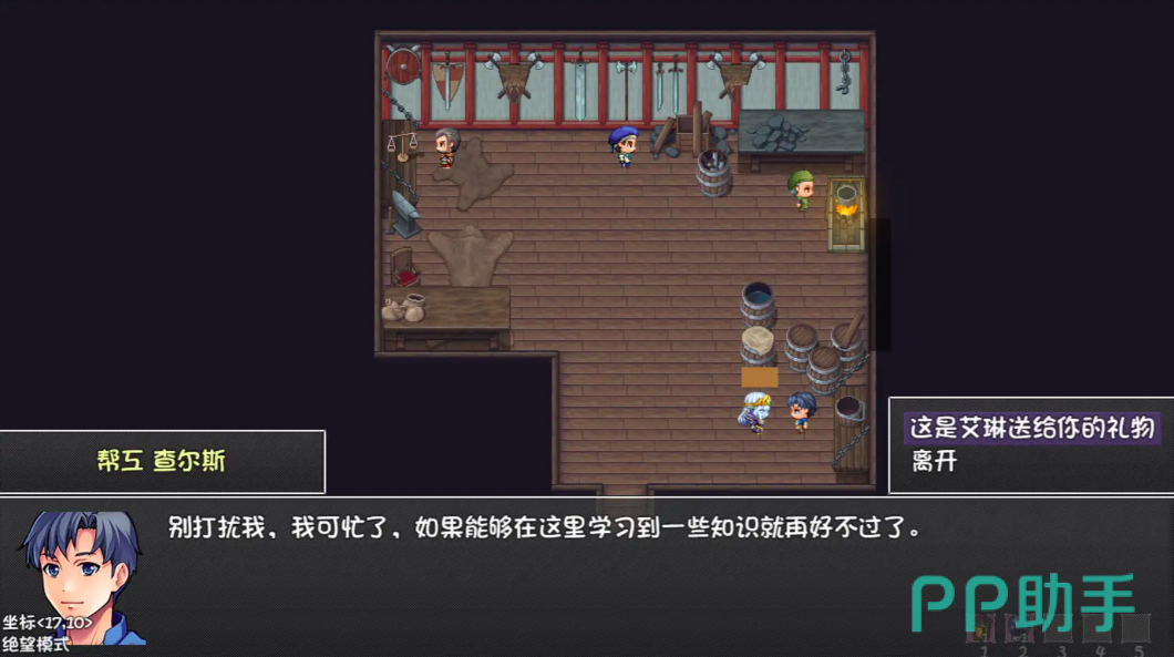 第三个任务内容是礼物的制作与成就任务。此时玩家需要前往(32,12)这个坐标位点上与皮革师艾琳进行对话。开启任务后怒角之角刷本图的boss怒角,可以材料,之后带着这些材料回去和艾琳对话,完成礼物制作,然后再次与他对话,就可以成功开启”艾琳的礼物“。此任务有两个分支分别解锁一个成就,所以在此时千万不要忘了存档。不过前期还有一个非常重要的任务可以帮助玩家解锁艾琳的爱情,玩家可以先去风车村的铁匠铺与查尔斯对话就可以获得这一成就。