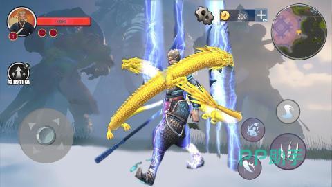 玩家将会在游戏中化身一个特别厉害的猴王,然后在战斗的时候就可以通过控制角色来发挥出各项技能。比如说可以进行重击或者是爆气以及加速等各项操作。玩家可以在地图场景内去搜索各种道具,而且可以随意的去选择各项物品。完成对战胜利后就能够获得大量的游戏奖励和装备。