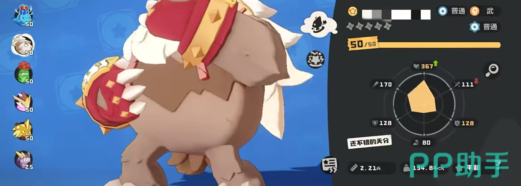 瞌睡王自身的种族值还是非常高的,达到了700点。各项属性方面,生命最高,为150点。物攻属性为140点,魔攻113。物防和魔防都在110左右,只是速度比较可怜,只有70。所以在实战中要落后于其他精灵,不过这都不是问题,其他属性的强悍,注定了他就要在实战中大放异彩。特性为慢热型,初始能量为0,首次入场前,己方每成功应对一次,获得5点能量。
