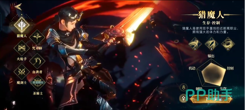 猎魔人是队伍中的肉盾角色,擅长生存和控制,双手重剑的近距离职业,拥有强大的体力和力量;如果大家喜欢对抗,想要打破对手的防线,那么就很适合选择,不管是PVP还是PVE都是有不错的发展空间的。初始技”巨剑狂斩”,挥舞大剑释放两道剑气,对前面矩形范围内的对手进行攻击,并让对手的移速降低一段时间。