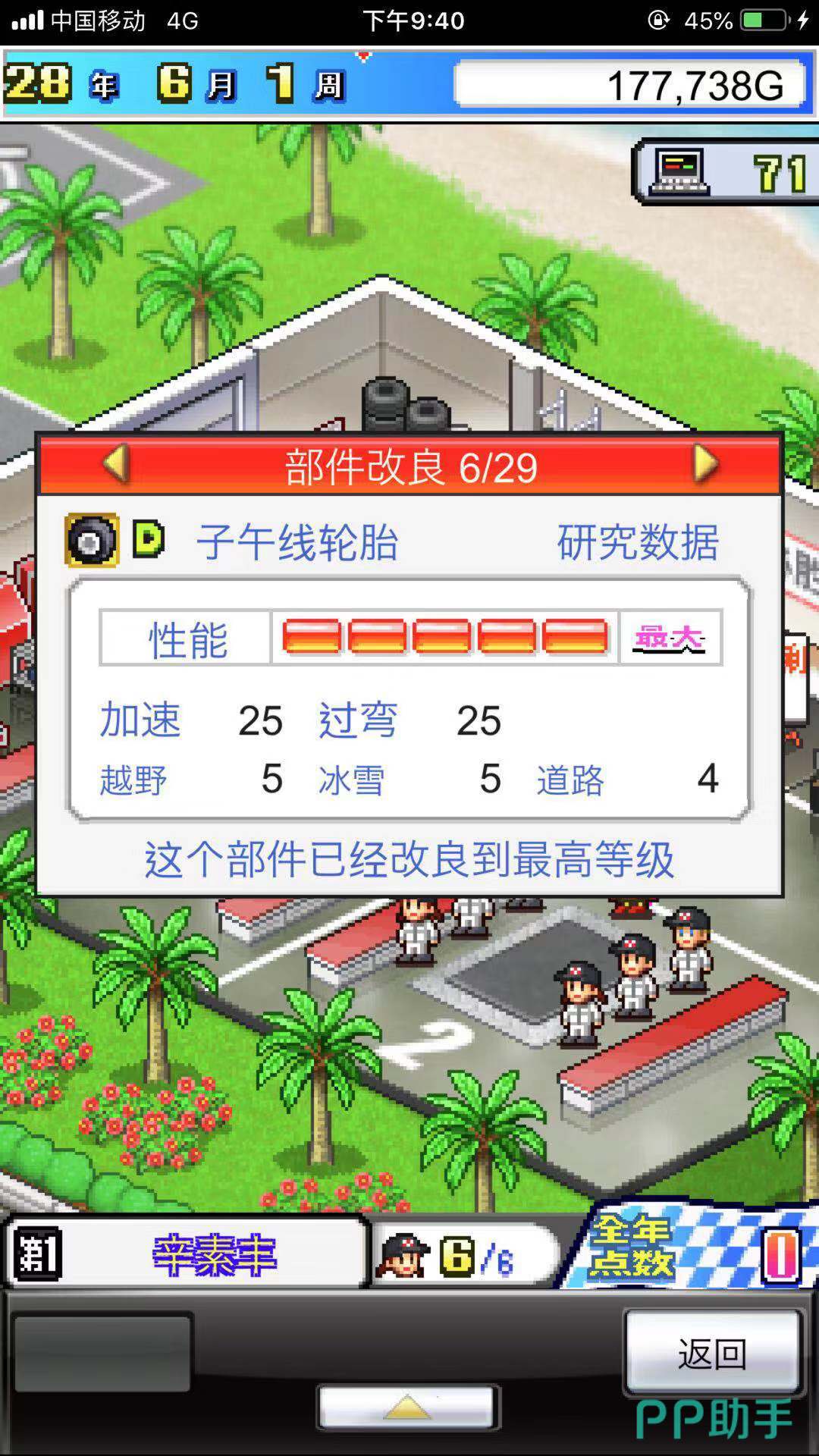 A级别部件:V12引擎通过V6引擎一步一步改良获得,改良到百分之80就出现更高级别的引擎,光头轮胎通过子午线轮胎改良获得,同样是百分之80,最后是涡轮增压,通过赞助商获取。最后一个配件可以装64位辅助或者空气动力车身,装64位辅助的话要求车手的油门、换挡、转向属性都超过100,这样才有效果。