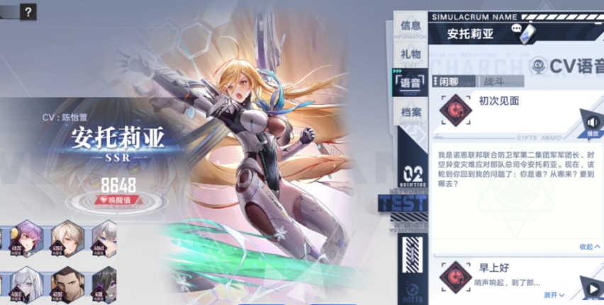 作为全新的拟态角色,她的背景方面表现很是丰富,作为诺恩联邦联合防卫军旗下的第二集团军团长,也是这一次异变灾害应对部队中的总指挥,她受基拉所托一直在秘密执行着代号“重塑现实”的行动,为的就是去有效来遏止异变灾难的蔓延,拯救艾达世界。