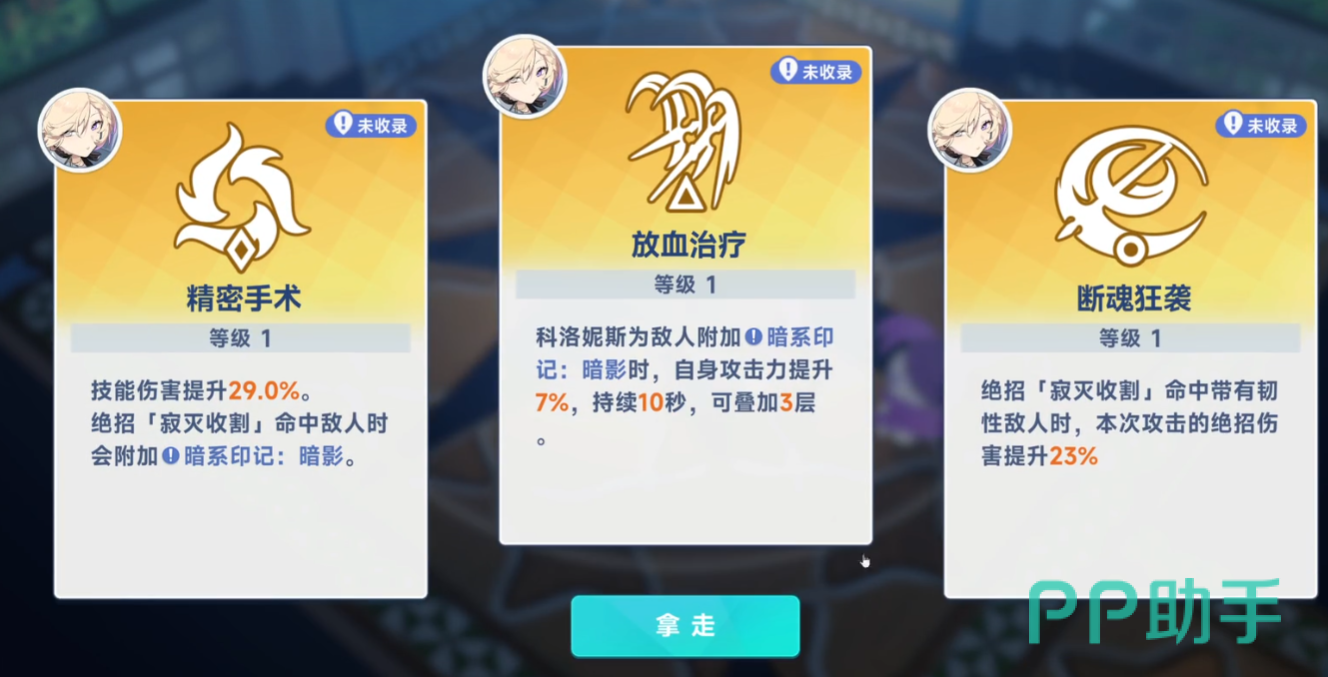 通关了第5层以后,就可以解锁新的卡牌。推荐大家带放血治疗,能够让他为敌人附加一层暗系的印记。而且攻击时自身的攻击力也会提升10%,然后可持续10秒,并且最多叠加三层。这样就能增加整个队伍的输出能力,自身也可打出更高的持续伤害。