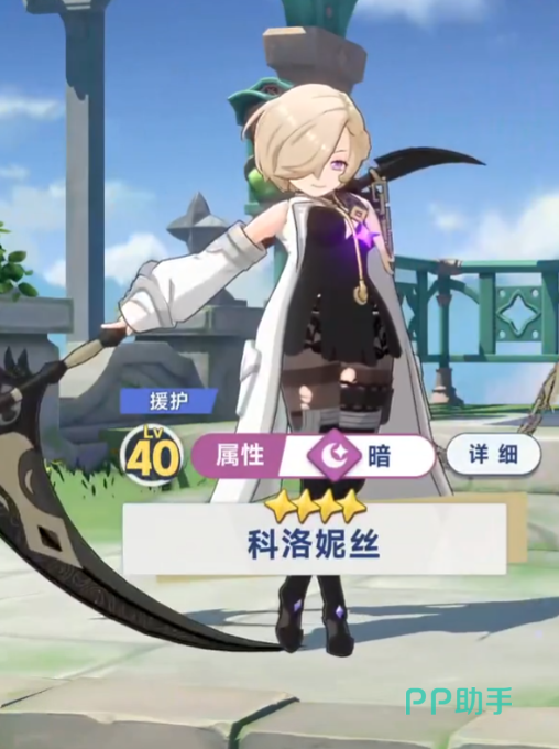 科洛妮丝有着一头黄色的头发,看上去温柔又动人。然后他可以挥舞巨型的暗属性镰刀,随着不断劈砍即可造成高额暗属性伤害。然后自身和黑丝以及其他装扮元素,但是吸引着广大玩家的眼球,加上高挑的身材,增添了几丝动人魅力。