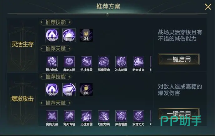 二技能”爆裂剑刃”,快速的用剑刺击对手,并迅速后撤和目标拉扯距离,在敌人这边造成大量的爆破伤害。三技能”恶魔之握”,经过短暂的蓄力将魔力之手召唤出来,抓住前方的对手对其造成眩晕,之后使用魔剑突进敌人并快速将其斩杀。