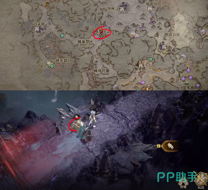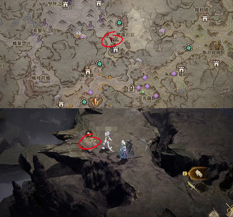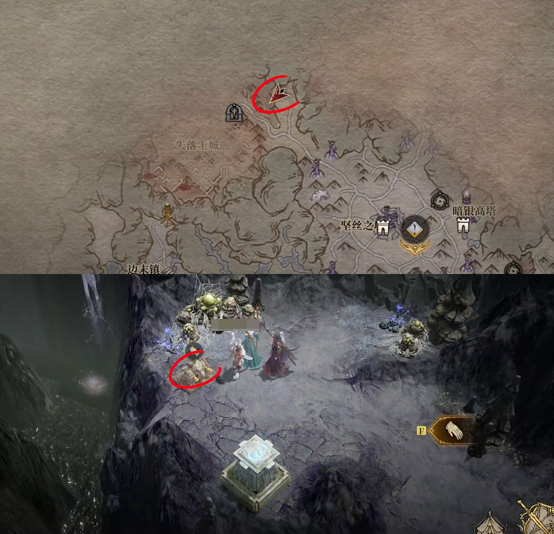 第八个宝藏地点则是位于失落王城的右上角,在靠近悬崖的地方有很多蜘蛛卵的地方就可以看到。