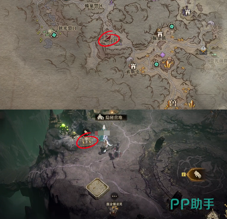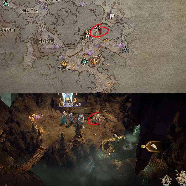 位于蛛母营地,在绿色发光的蜘蛛暖旁边就可以看到。