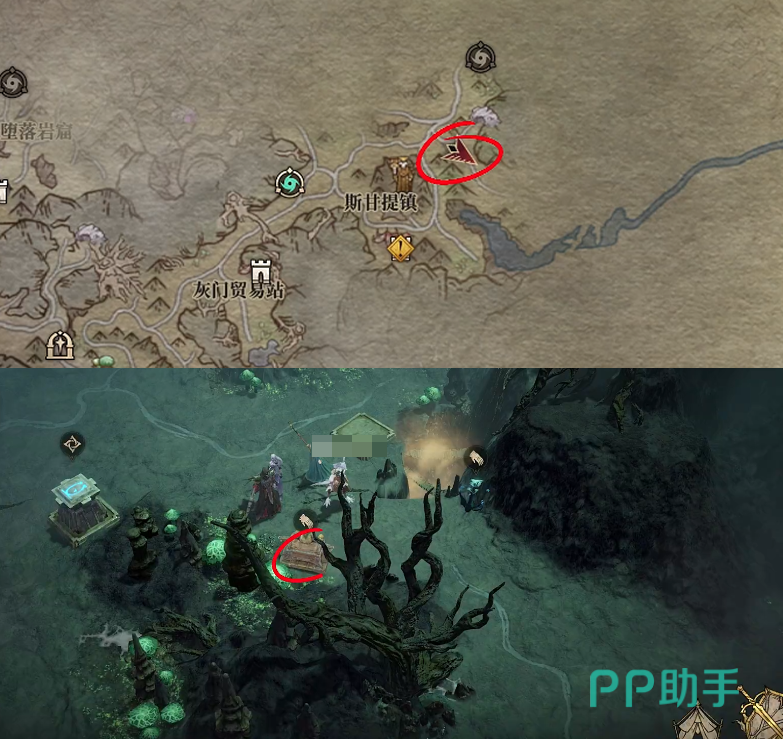 至此,这10个宝藏地图碎片的地点就找到了,将其拼在一起之后就可以找到最终宝藏,而最终宝藏是位于灰门贸易站的上方,在一条主干道的右侧,只要从这里经过是肯定能遇到的。