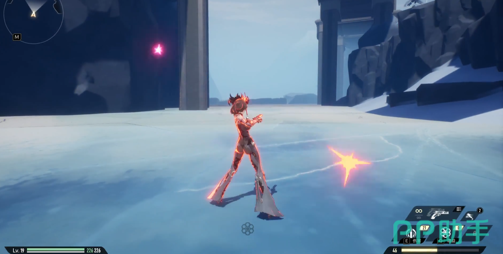 1技能“致命绽放”,该招式施展后,使用双枪,也就是“汉赛尔·格雷特”发射出一枚特殊的经过强化的子弹,对路径上的敌方单位造成火属性伤害,并给敌人附加“裂伤”效果。