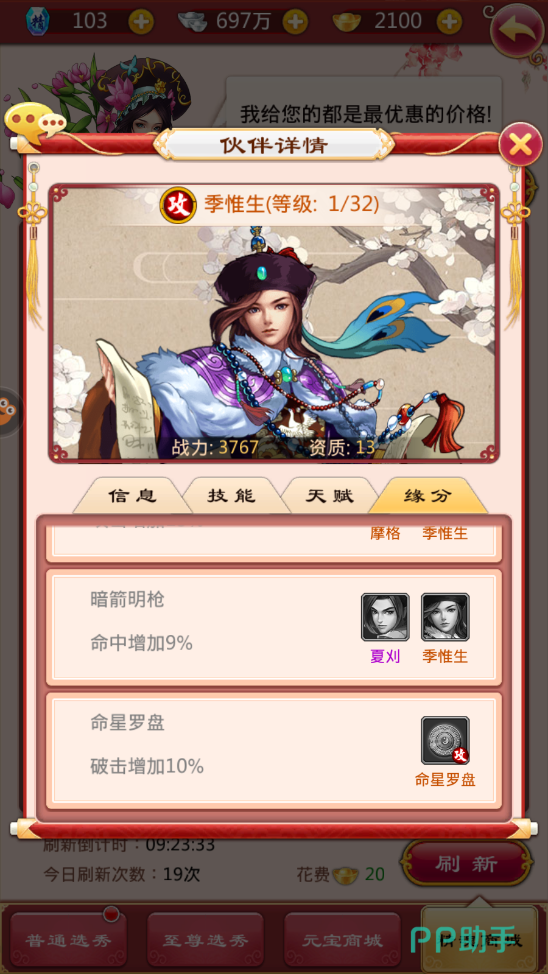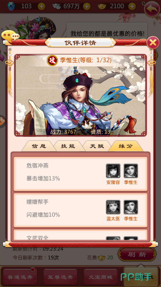 手游后宫甄嬛传季惟生怎么样?季惟生作为游戏中位数不多的男性角色,属性也是十分的强悍,作为一个物理攻击的角色,物理攻击力有321,那么如何才能玩好季惟生呢?