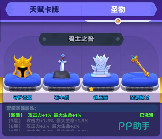 虽然装备没有套装效果,但圣物有,圣物是一种养成系统,主要是提供加成和属性,凑齐特定的圣物也有套装加成,品质从蓝到红有四个稀有度,主要是通过祈愿抽。