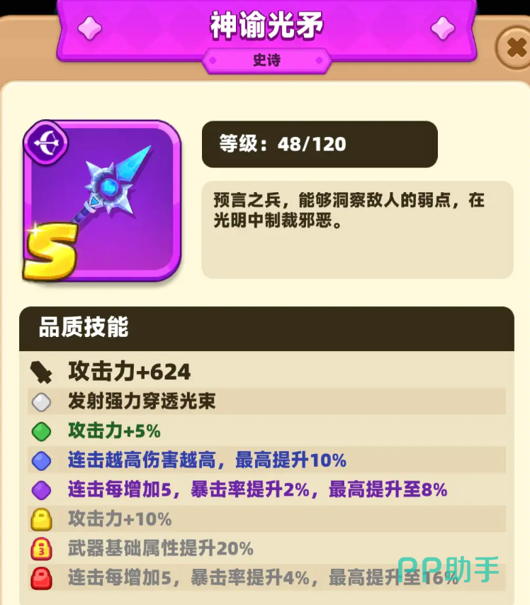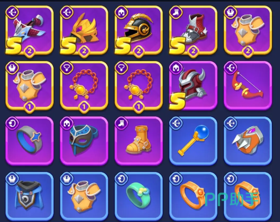 此外,还有一些特有的S级装备,这个要比普通装备更厉害,但是获取难度很高。从紫色品质的装备开始就有装备专属效果了,更多时候玩家是根据效果来攒合适加成的装备。紫色品质以下的装备,每3件同品质的可以合成一个件更高品质的。