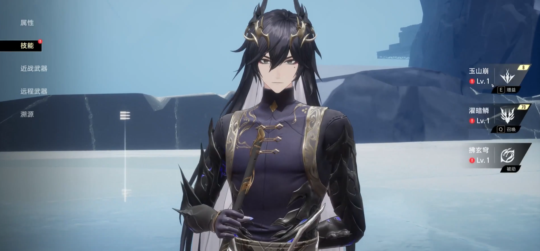 一技能“玉山崩”,他对周围的敌人打出雷属性伤害,并令自身跳跃至空中,滞空期间下次下落攻击的攻击范围提高,如果“玄蛟”存在。下次下落攻击时”玄蛟”会同时进行一次特殊攻击,同样也让对手遭受雷属性损伤。