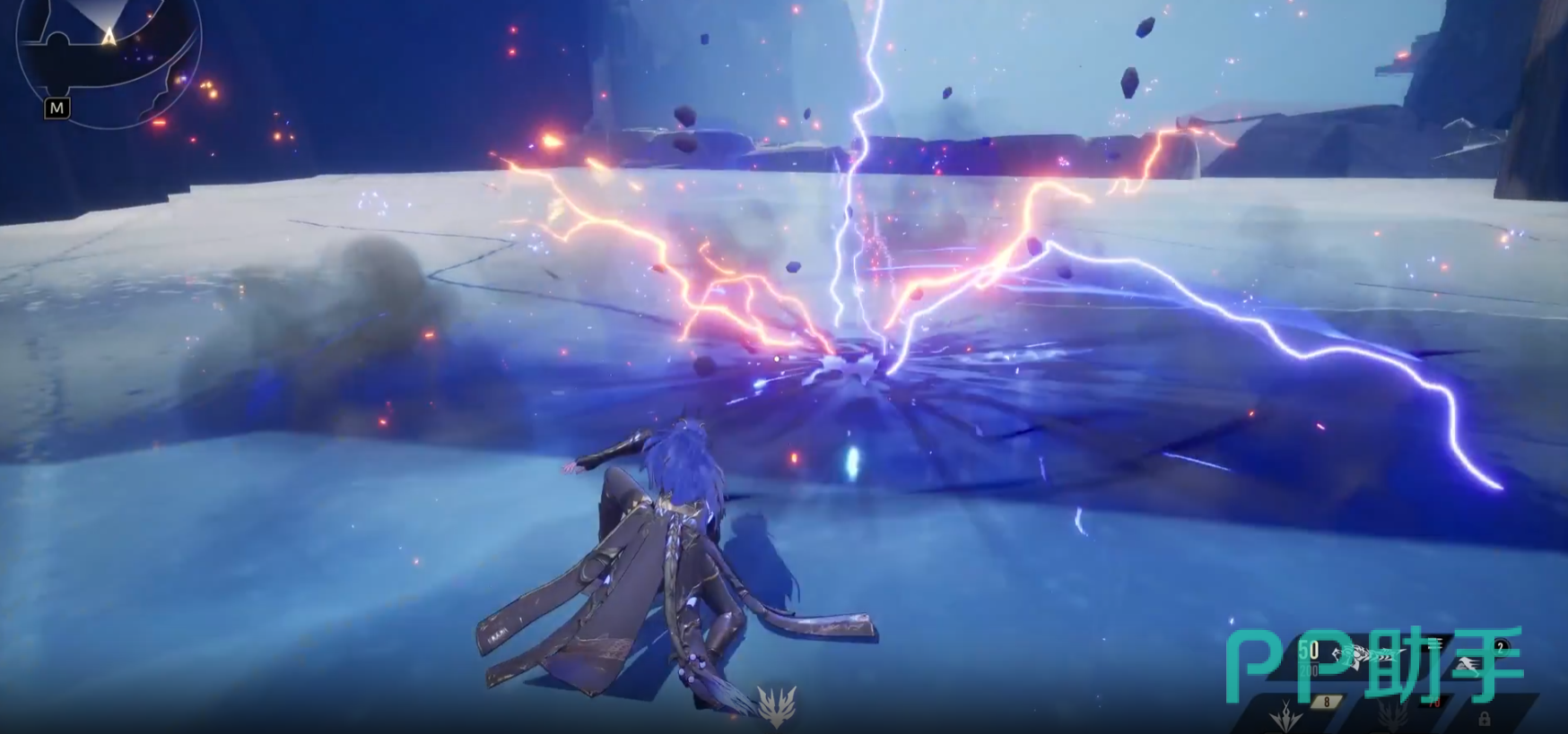 二技能“濯暗鳞”,对自己四周的对手造成雷属性损伤,并将“玄蛟召唤”出来,“玄蛟”存在期间,自身受到伤害时不会产生僵直,并将他自己受到的生命值伤害直接转移到召唤的“玄蛟”身上,该招式能明显的提高自身的生存能力。
