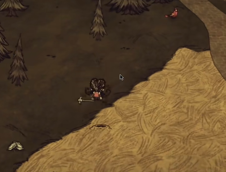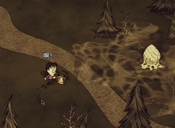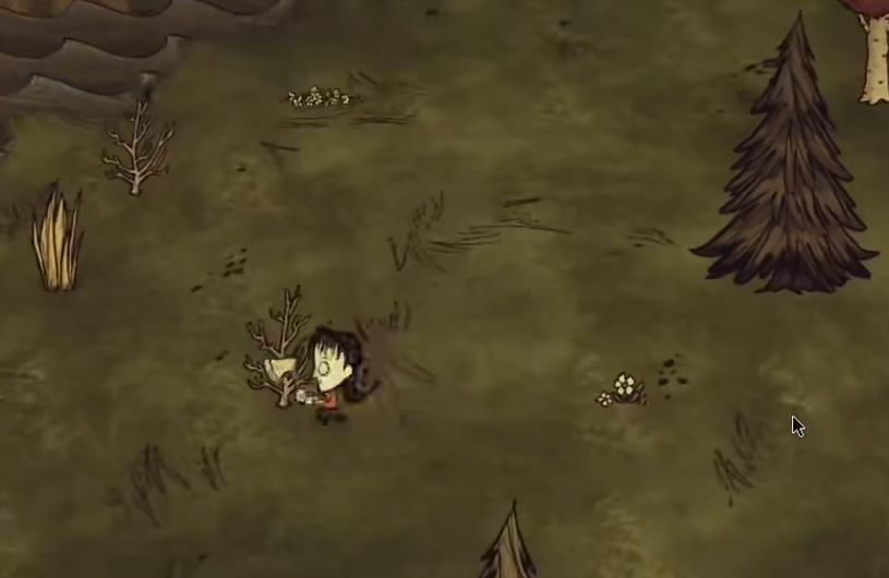在选择完毕之后,咱们进入游戏之中,游戏刚开始我们一般是处于秋季,这个季节对我们来说很危险的生物并不算多。咱们首先需要做的第一件事是燃起一个火堆,这对于接下来咱们的生存很重要。