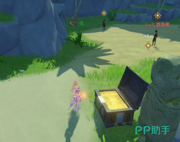 接着咱们就需要去清理前方的黑宝团的成员。在剧情之后咱们直接对其进行攻击。这几个人的血量和攻击力都很低,咱们可以轻松的将其给击败。击败之后可以看到后面所放置的宝箱,我们可以过去进行打开。