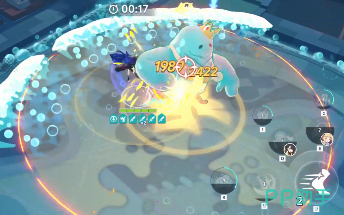 到最后的话就会遇到带有冰冻能力的怪物,这时就可以直接召唤出其他队友一同上阵。然后彼此一起合力输出后,他的血量自然掉的很快。到这时候我们要注意跑到他前面,因为水球会往我们的后面集中,躲过之后才能继续进攻。这点注意完后继续消耗他的血量,就能通关。