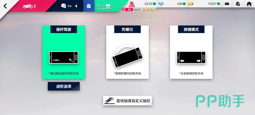 在练习技术之前,小伙伴们先要选择一个自己适合的操作安排,游戏给大家提供了三种操作形式,比如摇杆的,按键的以及陀螺的,大家根据自己的操作习惯选择即可。如果选择之后有的按键操作起来还是不是很方便的话,大家还可以进行细微的调整,这也是可以自定义设置的。