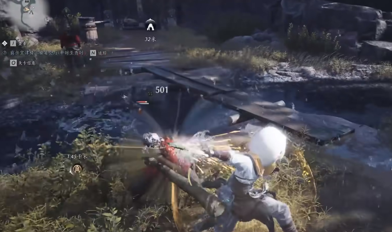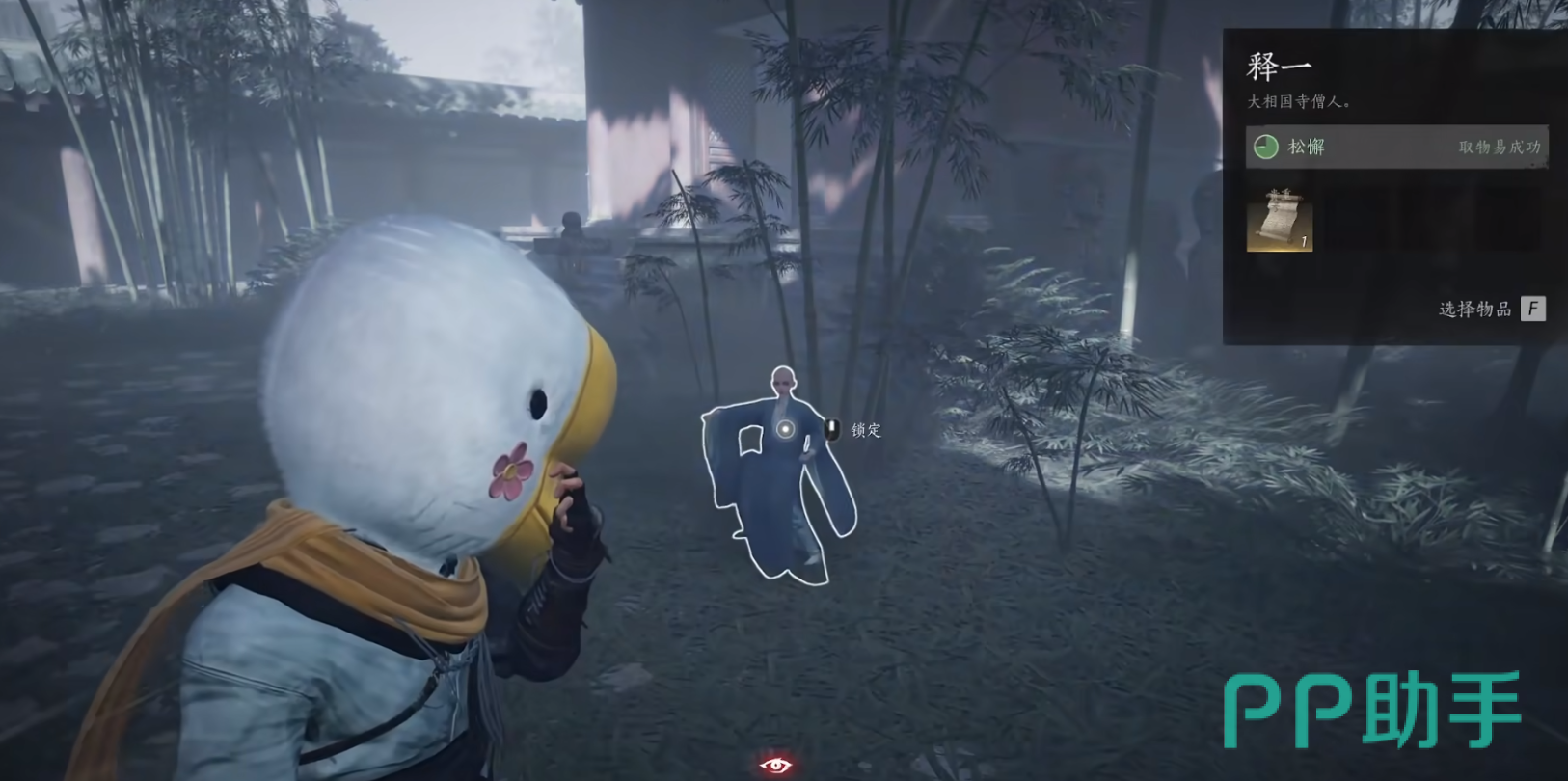 接下来,你会发现寺庙竹林中,有一位名叫释一的和尚NPC正在练功。此时,玩家需要使用“摄星拿月”来从小和尚的背包中偷取无相金身的秘籍。值得注意的是,释一的状态处于松懈,这时使用技能的成功率更高,能更轻松地偷取到秘籍。