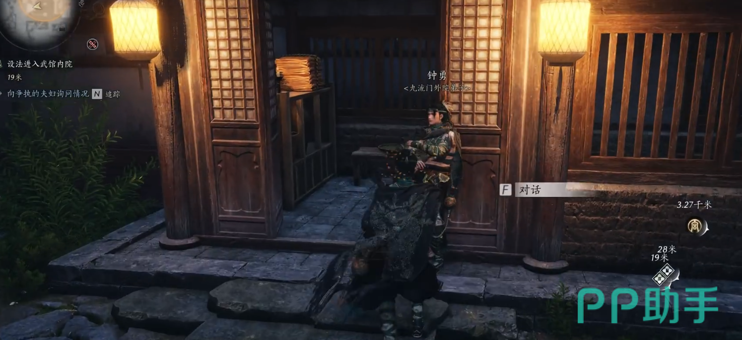 进入武馆后,进入练武场需要内门弟子令牌才能进入。与左侧的NPC钟勇对话,选择第一个回答,转身前往对面的厨房,与那里的NPC对话。通过“听风辨位”与NPC交换,获得内门弟子令牌。