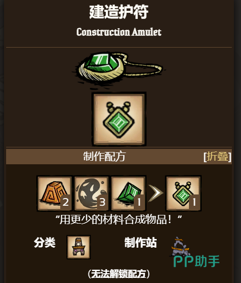 目前这就是小编提供的饥荒联机版建造护符怎么获得的全部信息,建筑护符可以有效 提供玩家们的生产力,不过次数很少,所以去建造稀有物品,合成路径如上述攻略所示。
